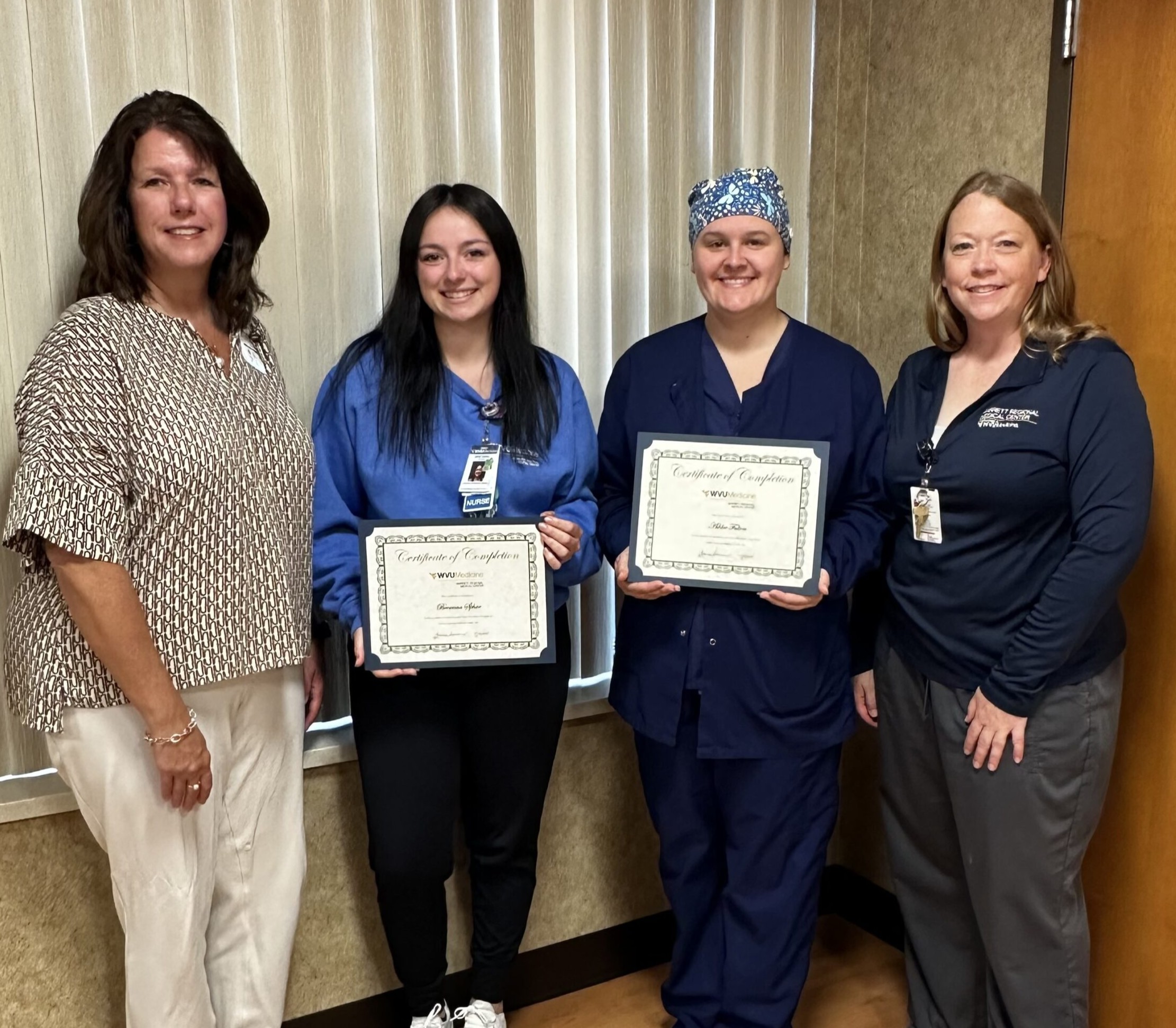 Pictured left to right: Kendra Thayer, vice president of clinical services and chief nursing officer, GRMC & Potomac Valley Hospital; Breanna Sphar, LPN; Ashlee Fulton, RN; and Amanda Simmons, manager of clinical education and development at GRMC.
